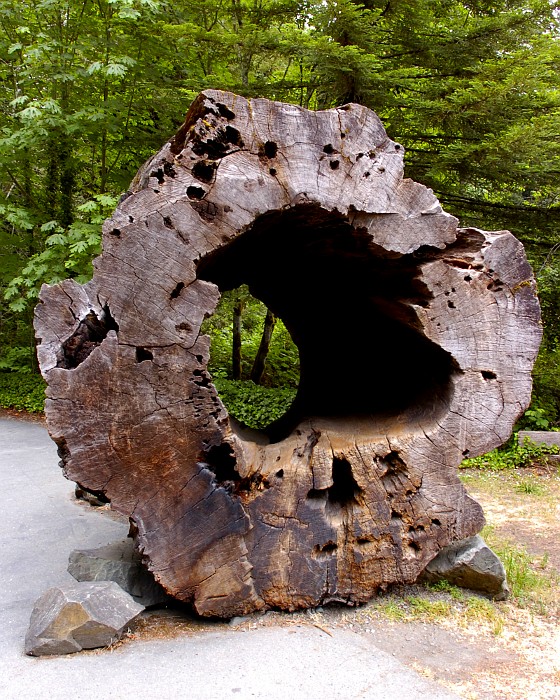 An einem Parkplatz konnte man einen hohlen Baum betrachten - der war grösser als ich.